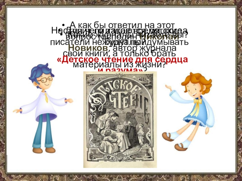 А как бы ответил на этот вопрос господин Николай Новиков, автор журнала «Детское чтение для сердца и разума»?