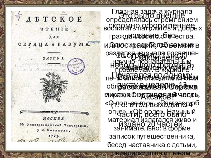 С какой целью издавался журнал? Вспомните, что о нём рассказывал Серёжа Аксаков?