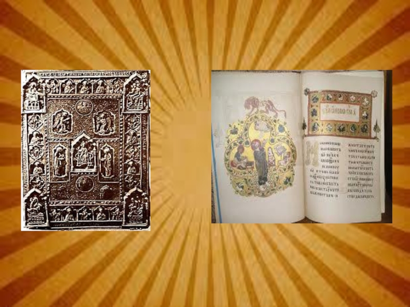 Слайд 7Самой первой рукописной книгой, написанной на кириллице, является Остромирово Евангелие на
