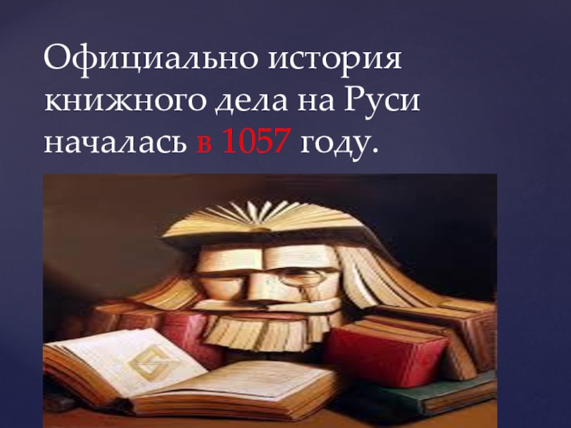 Слайд 6Официально история книжного дела на Руси началась в 1057 году.