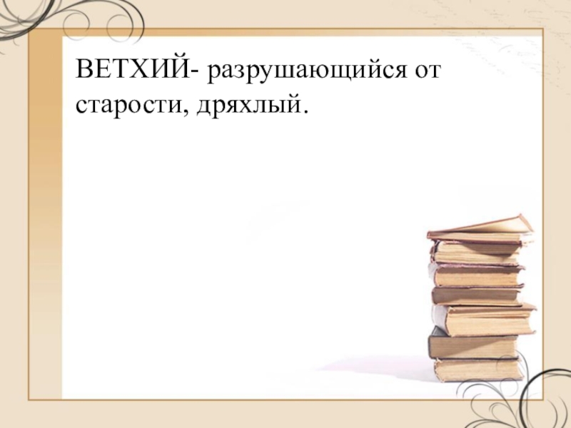 ВЕТХИЙ- разрушающийся от старости, дряхлый.