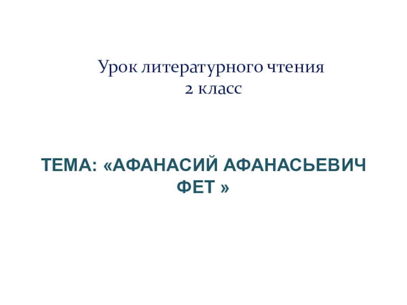 Слайд 1Тема: «Афанасий Афанасьевич Фет »