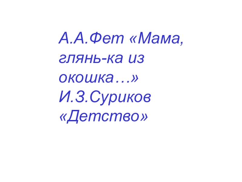 А.А.Фет «Мама, глянь-ка из окошка…»И.З.Суриков «Детство»