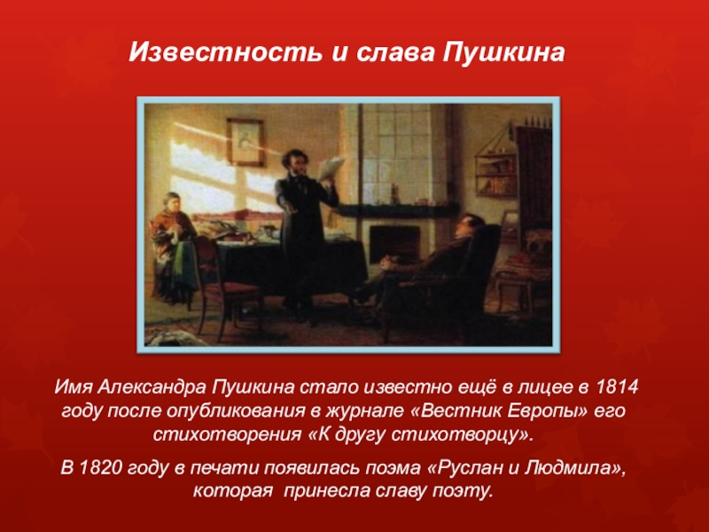 Вскоре вместе с женой Пушкин переехал в Петербург.
