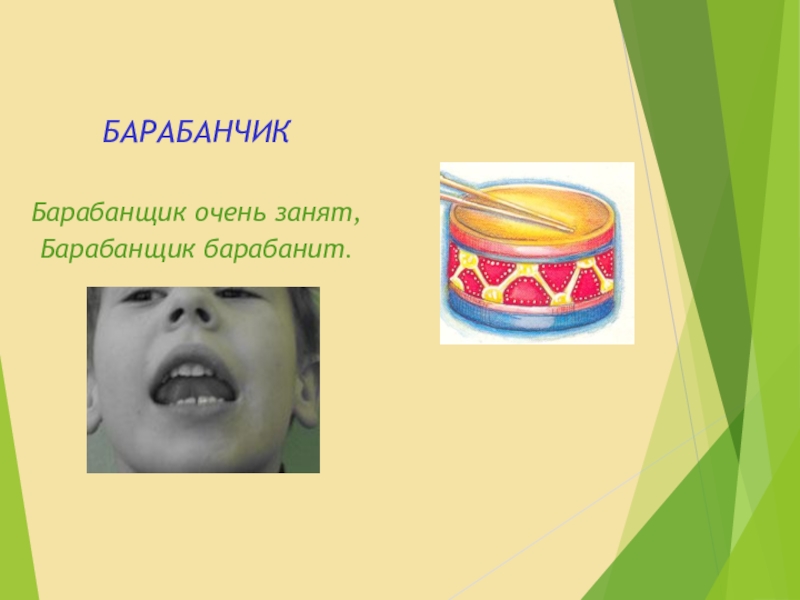 БАРАБАНЧИКБарабанщик очень занят,Барабанщик барабанит.