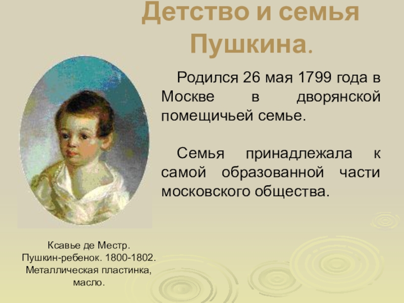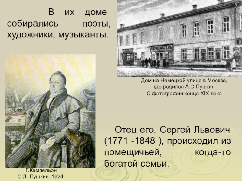 Отец его, Сергей Львович (1771 -1848 ), происходил из помещичьей, когда-то богатой семьи.