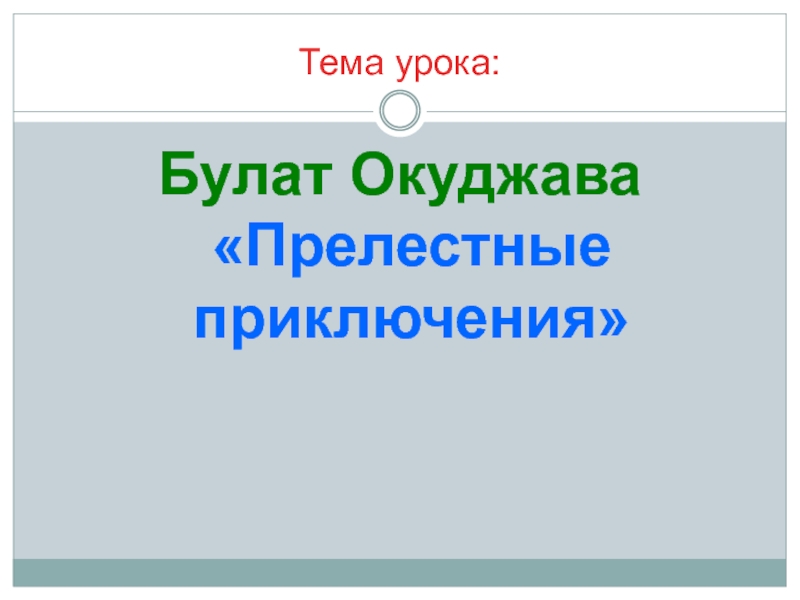 Тема урока:Булат Окуджава «Прелестные приключения»