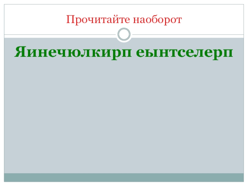 Прочитайте наоборотЯинечюлкирп еынтселерп