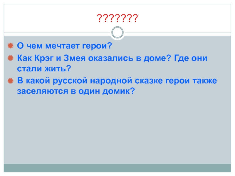 ???????О чем мечтает герои?Как Крэг и Змея оказались в доме? Где они стали жить?В какой русской народной