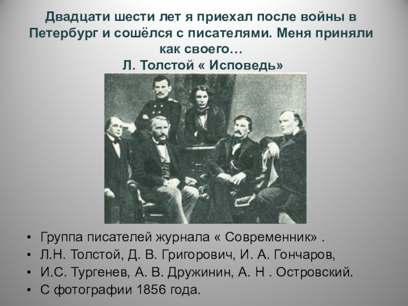 Л.Н. Толстой, Д. В. Григорович, И. А. Гончаров,