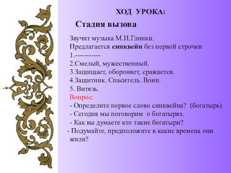 - Определите первое слово синквейна? (богатырь)