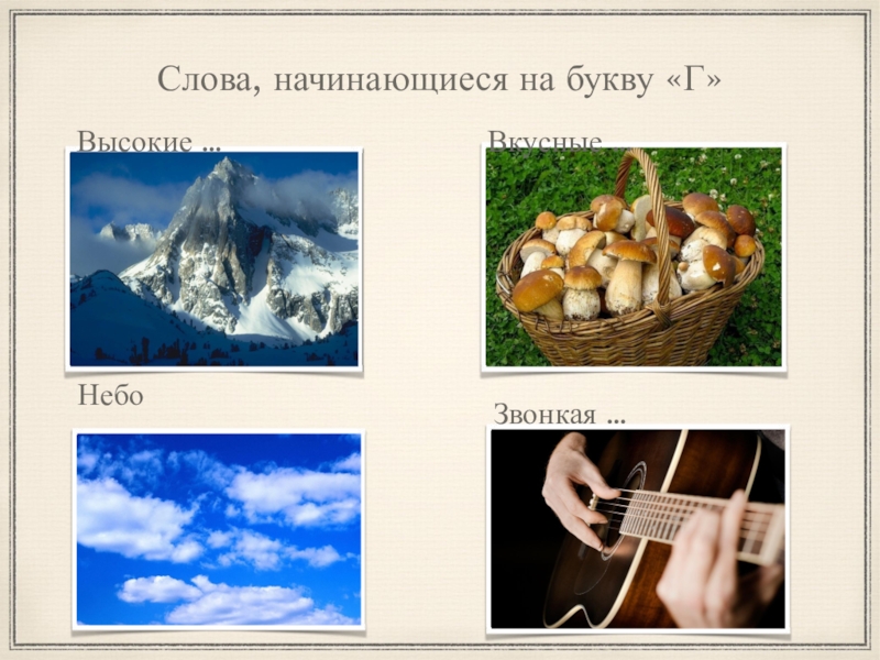 Слова, начинающиеся на букву «Г»Высокие …НебоВкусные …Звонкая …