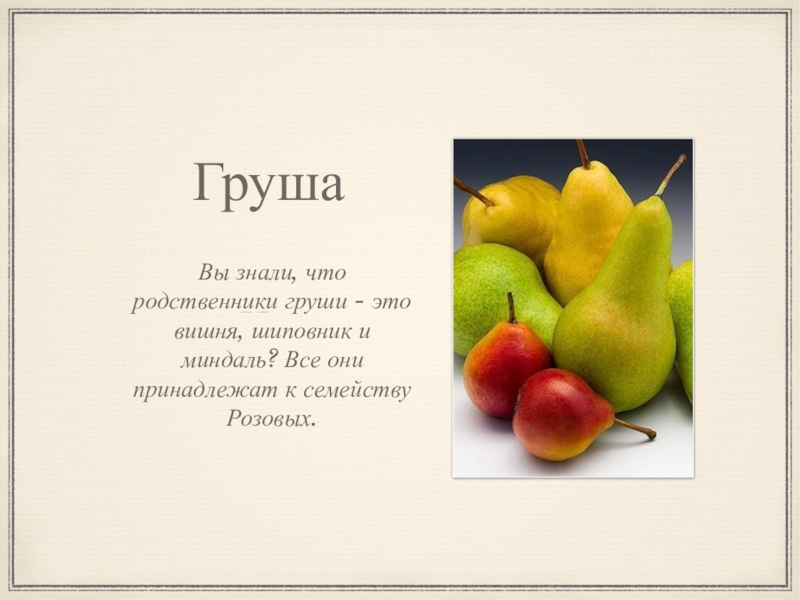 Вы знали, что родственники груши - это вишня, шиповник и миндаль?