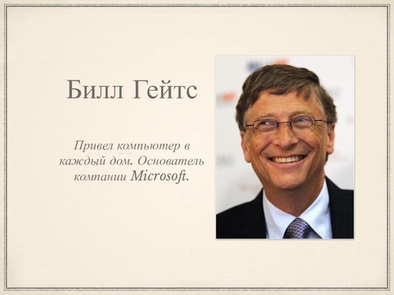 Привел компьютер в каждый дом. Основатель компании Microsoft.