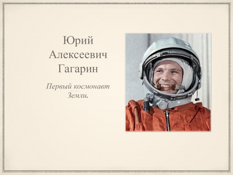 Юрий Алексеевич ГагаринПервый космонавт Земли.
