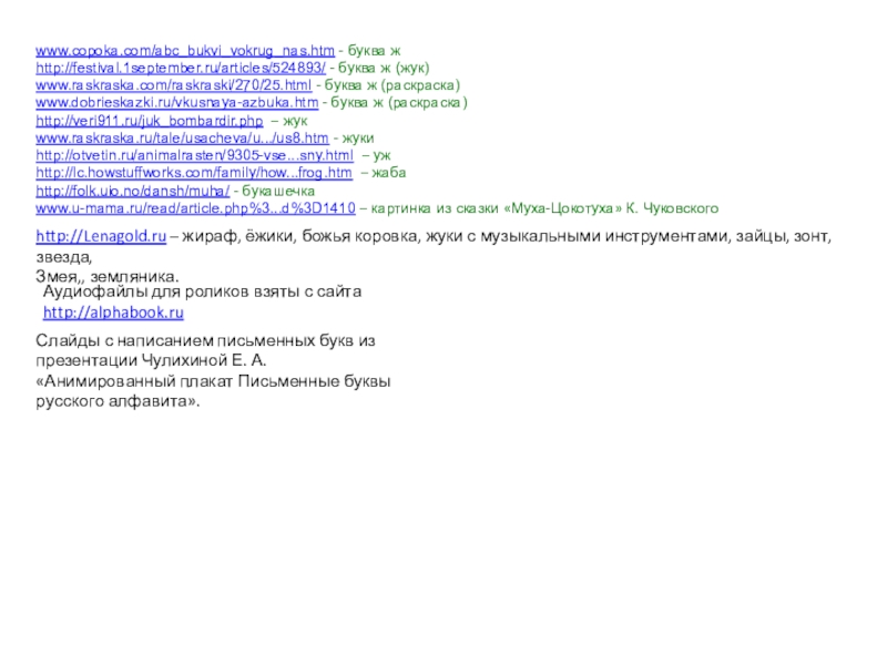 Аудиофайлы для роликов взяты с сайта http://alphabook.ru