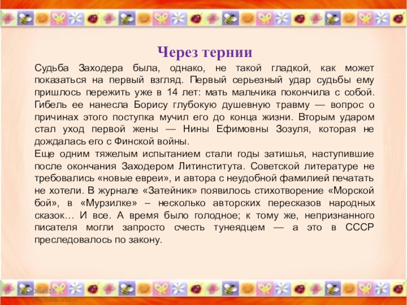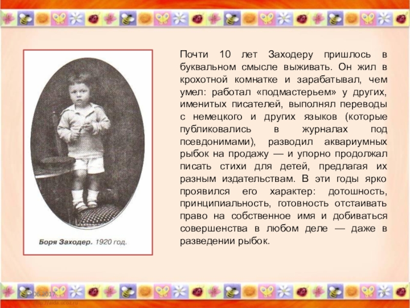 Слайд 9Почти 10 лет Заходеру пришлось в буквальном смысле выживать. Он жил