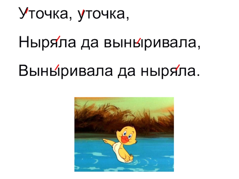 Слайд 3Уточка, уточка, Ныряла да выныривала, Выныривала да ныряла.