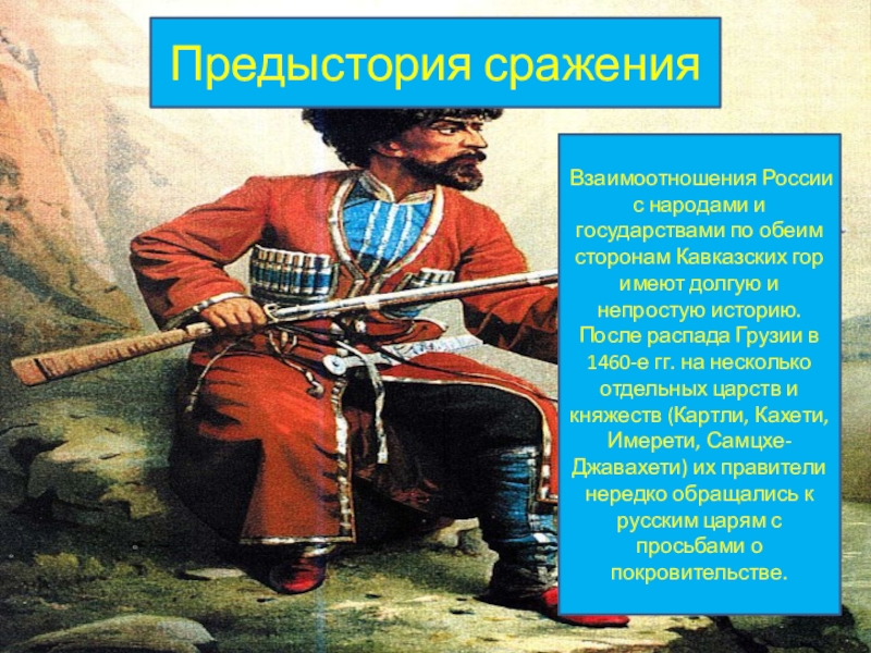 гор имеют долгую и непростую историю. После распада Грузии в 1460-е гг. на несколько отдельных царств и княжеств (Картли, Кахети, Имерети, Самцхе-Джавахети) их правители нередко обращались к русским царям с просьбами о покровительстве.