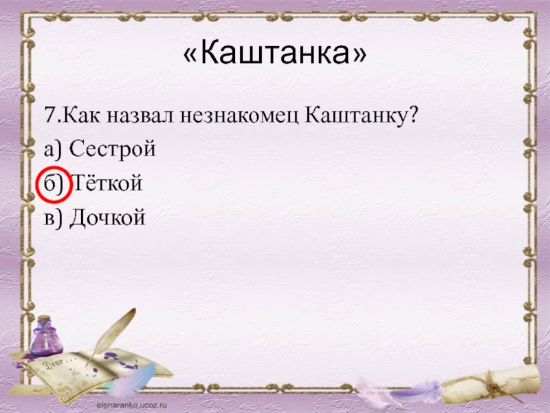 7.Как назвал незнакомец Каштанку?