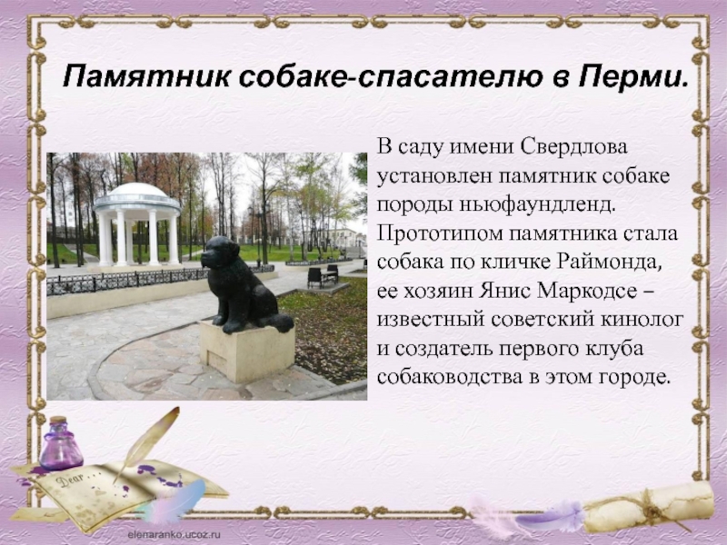 Слайд 63Памятник собаке-спасателю в Перми.