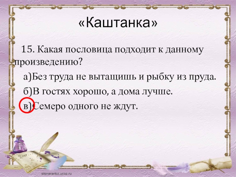 15. Какая пословица выражает главную мысль рассказа?