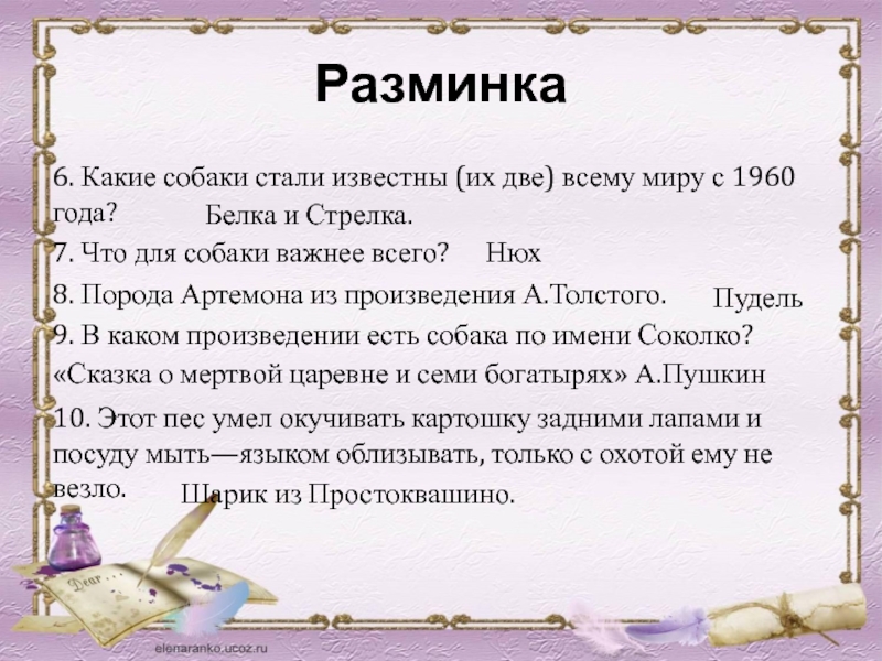 2. Как звали собаку, которая помогла
