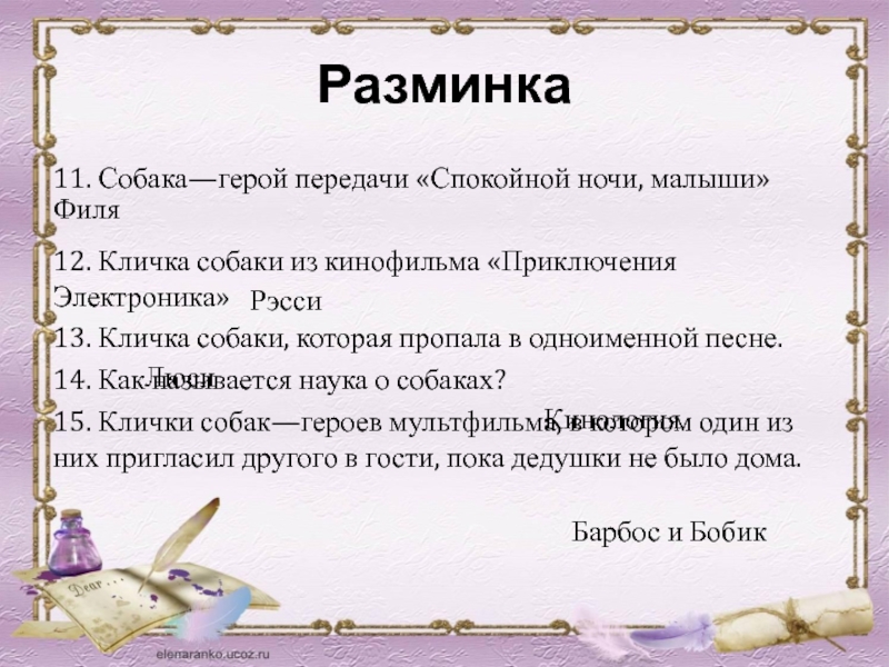 14. Как называется наука о собаках?