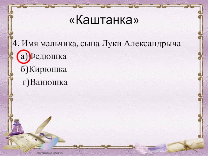 4. Имя мальчика, сына Луки Александрыча