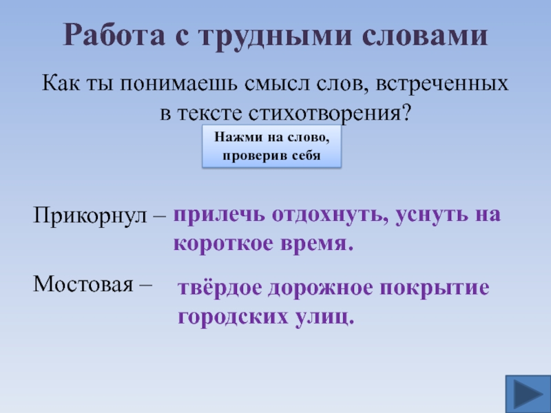 Нажми на слово, проверив себя