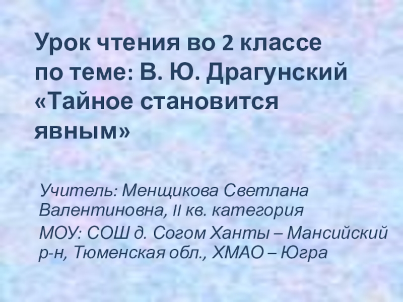 Учитель: Менщикова Светлана Валентиновна, II кв. категория