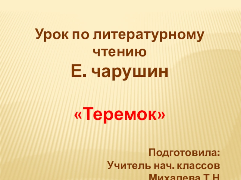 Урок по литературному чтениюЕ. чарушин «Теремок»Подготовила: Учитель нач. классовМихалева Т.Н
