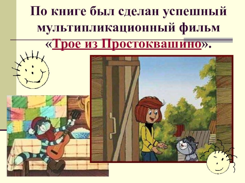 Слайд 8По книге был сделан успешный мультипликационный фильм «Трое из Простоквашино».