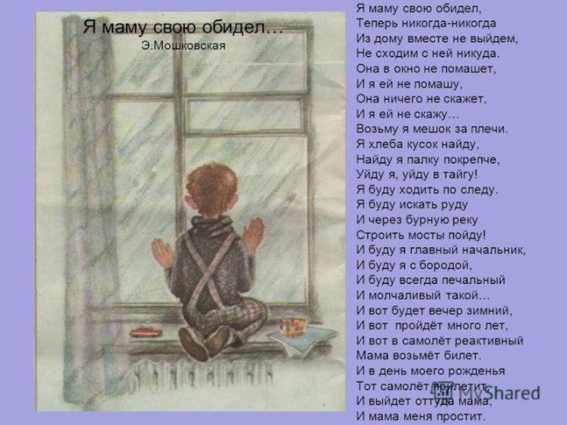 Презентация, доклад по литературному чтению Э.Э. Мошковская Я маму мою обидел