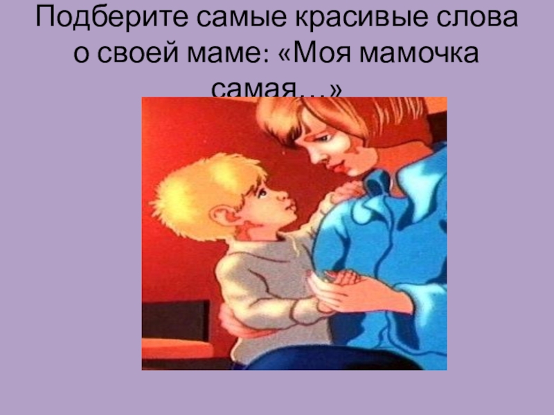 Слайд 17Подберите самые красивые слова о своей маме: «Моя мамочка самая…»