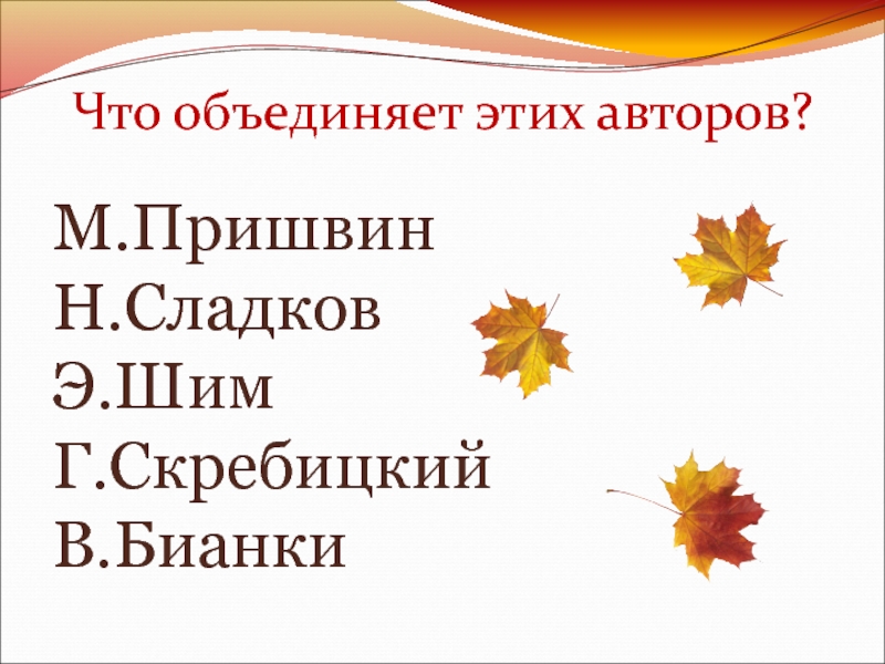 М.Пришвин Н.Сладков Э.Шим Г.Скребицкий В.Бианки Что объединяет этих авторов?