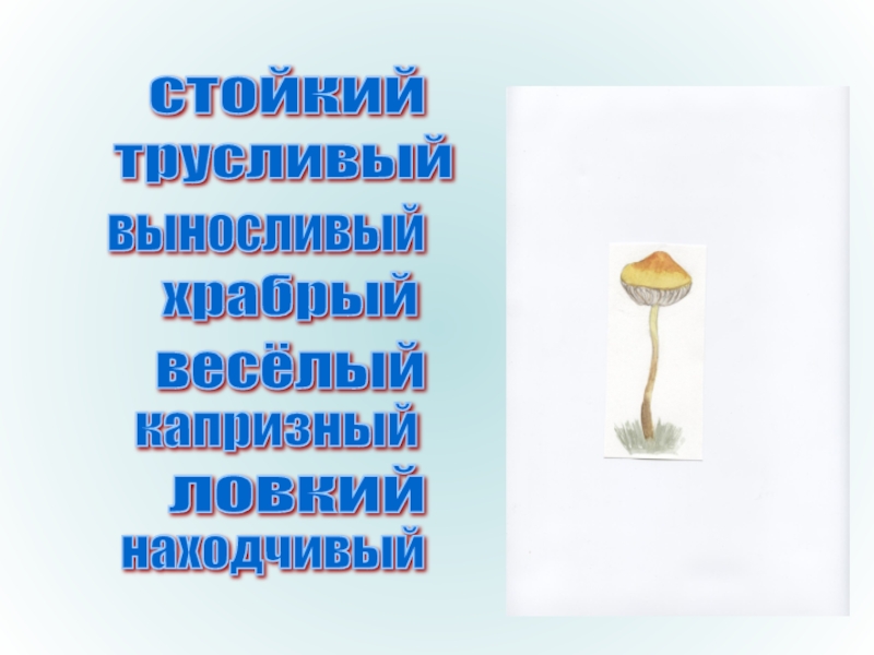 храбрый трусливый выносливый весёлый стойкий находчивый капризный ловкий