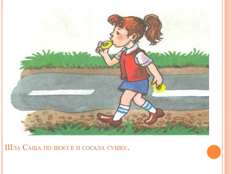 Слайд 7Шла Саша по шоссе и сосала сушку.