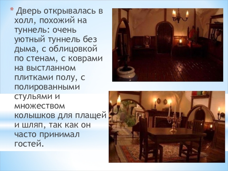 Слайд 5 Дверь открывалась в холл, похожий на туннель: очень уютный туннель