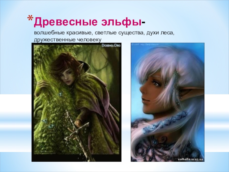 Слайд 9Древесные эльфы- волшебные красивые, светлые существа, духи леса, дружественные человеку
