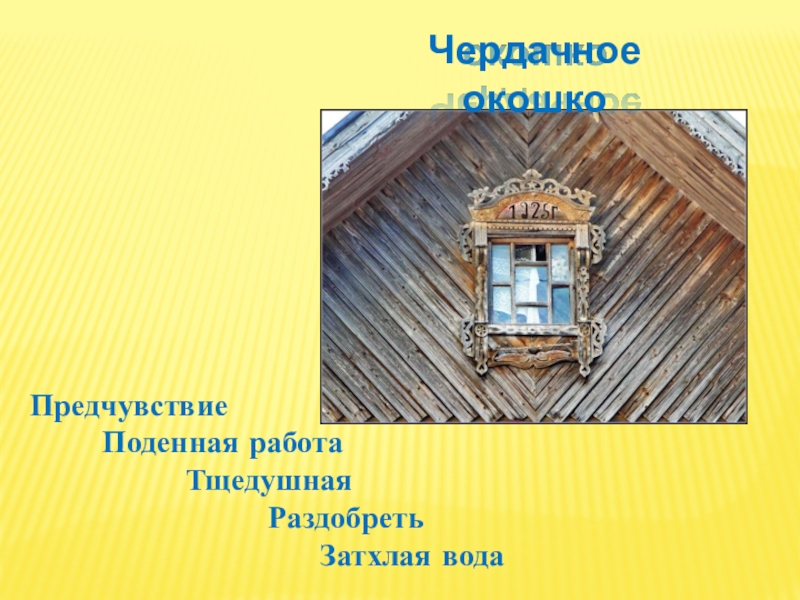 Чердачное окошкоПредчувствие    Поденная работа        Тщедушная