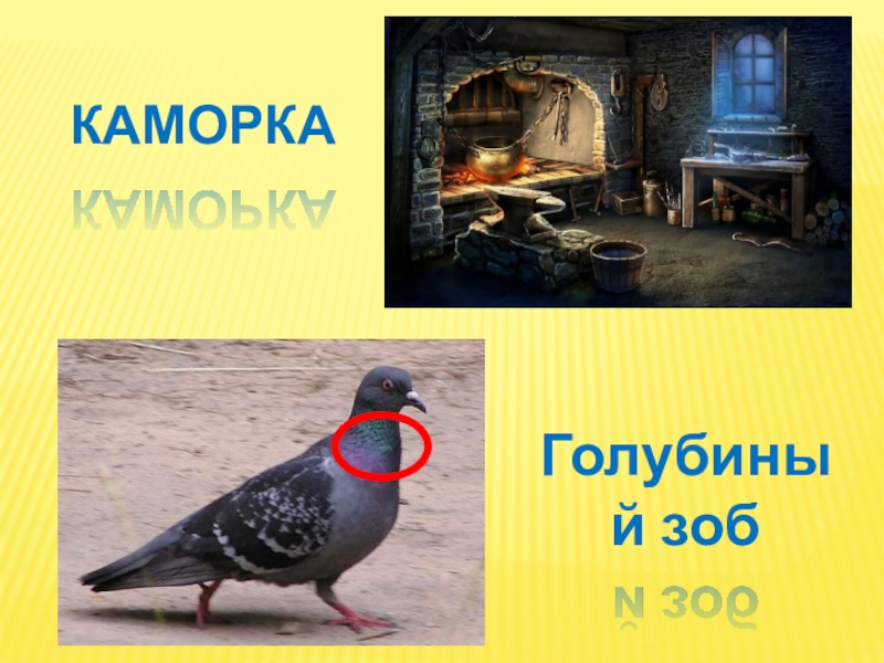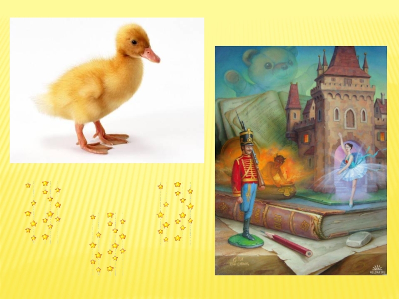 Слайд 7На плетне зеленый крюк, на крюке висит сундук, в сундуке пять ребят, смирно рядышком