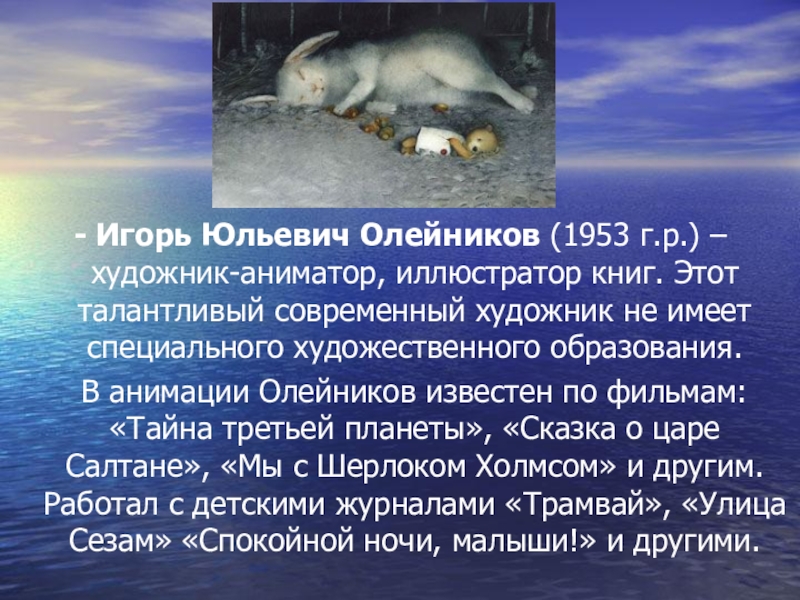 Слайд 24- Игорь Юльевич Олейников (1953 г.р.) – художник-аниматор, иллюстратор книг. Этот