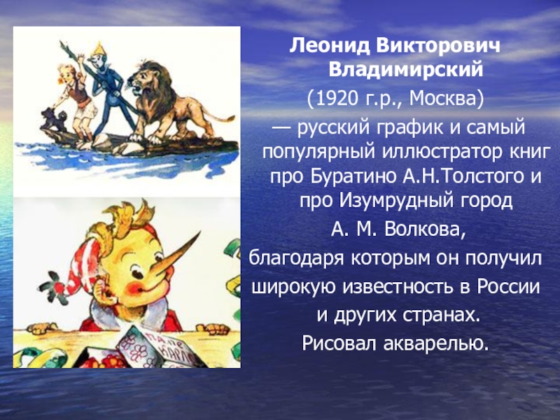 популярный иллюстратор книг про Буратино А.Н.Толстого и про Изумрудный город