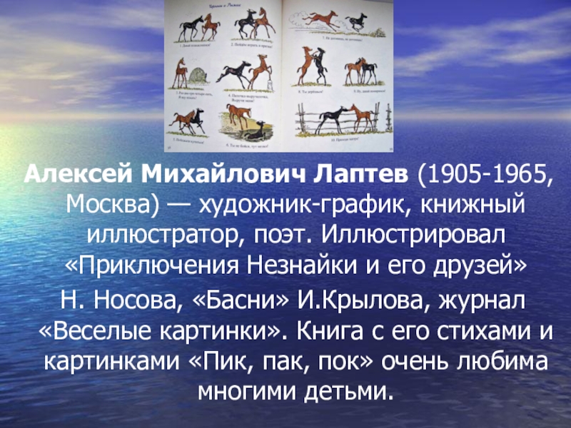 Слайд 11 Алексей Михайлович Лаптев (1905-1965, Москва) — художник-график, книжный иллюстратор, поэт.