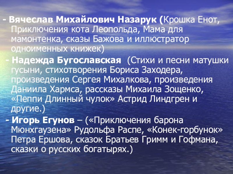 Слайд 22- Вячеслав Михайлович Назарук (Крошка Енот, Приключения кота Леопольда, Мама для