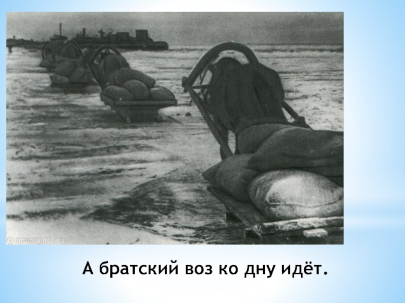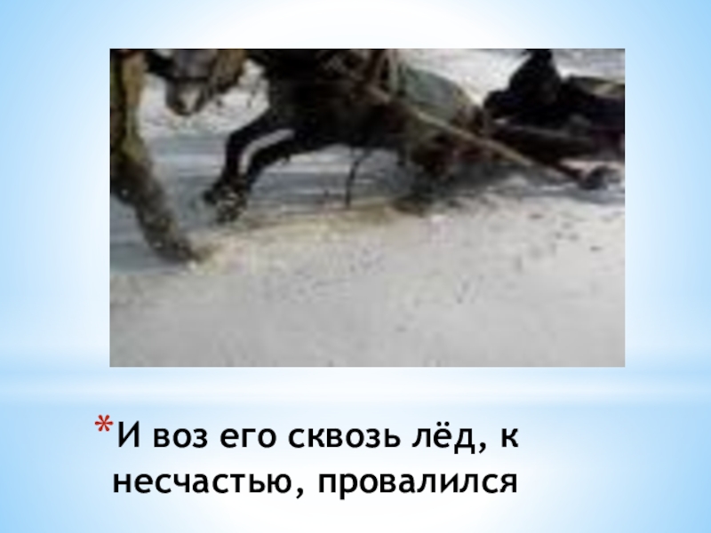 Слайд 11И воз его сквозь лёд, к несчастью, провалился