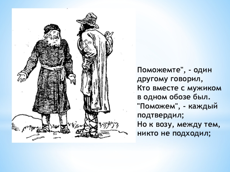 Слайд 13Поможемте", - один другому говорил, Кто вместе с мужиком в одном обозе