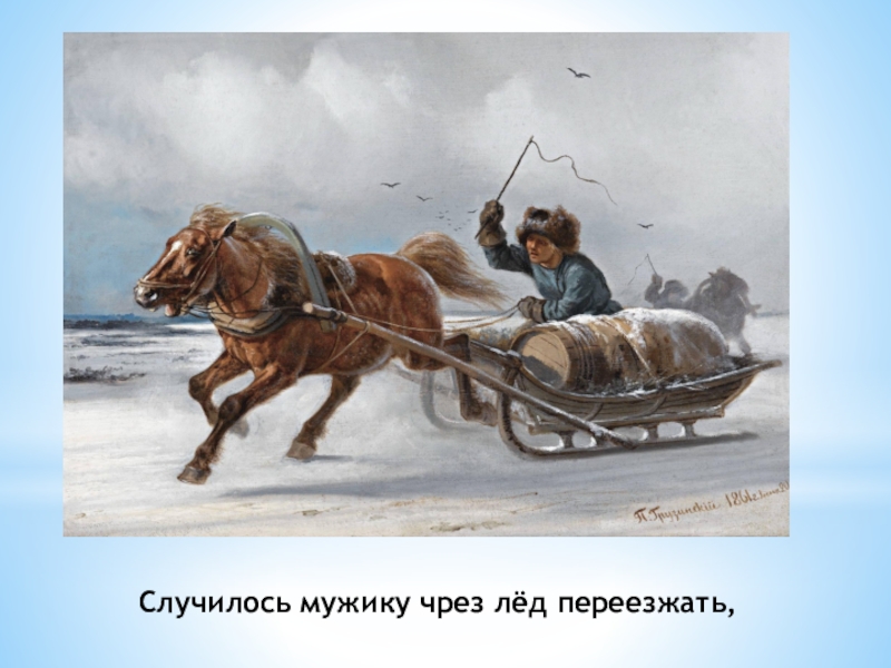 Слайд 10Случилось мужику чрез лёд переезжать,