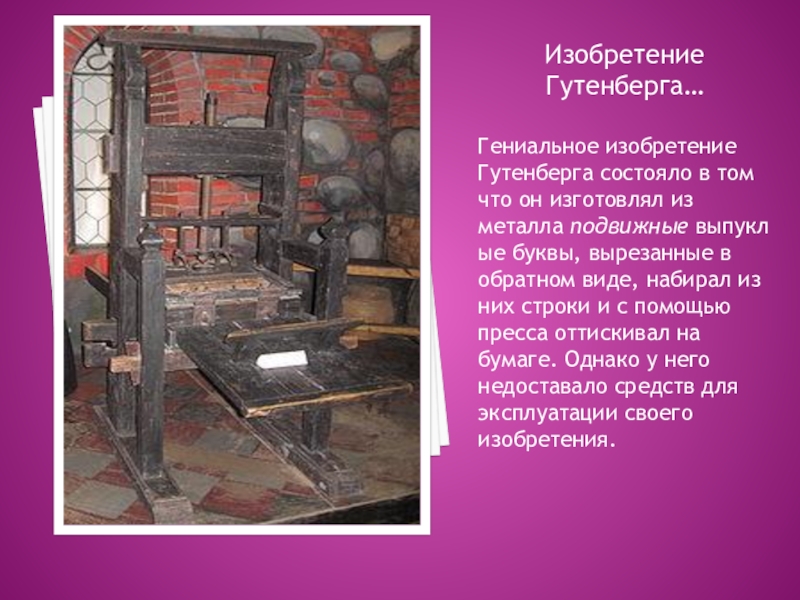 Гениальное изобретение Гутенберга состояло в том что он изготовлял из